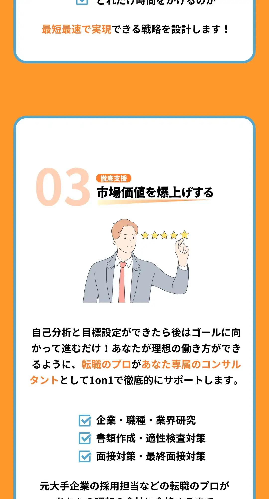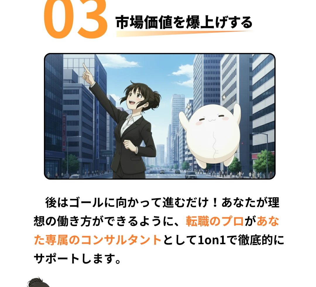 あなた専属のキャリアカウンセラーがあなたの不安に徹底的に寄り添い、転職が成功するまでサポートしますので、まずはお気軽に無料の転職相談におこしください。