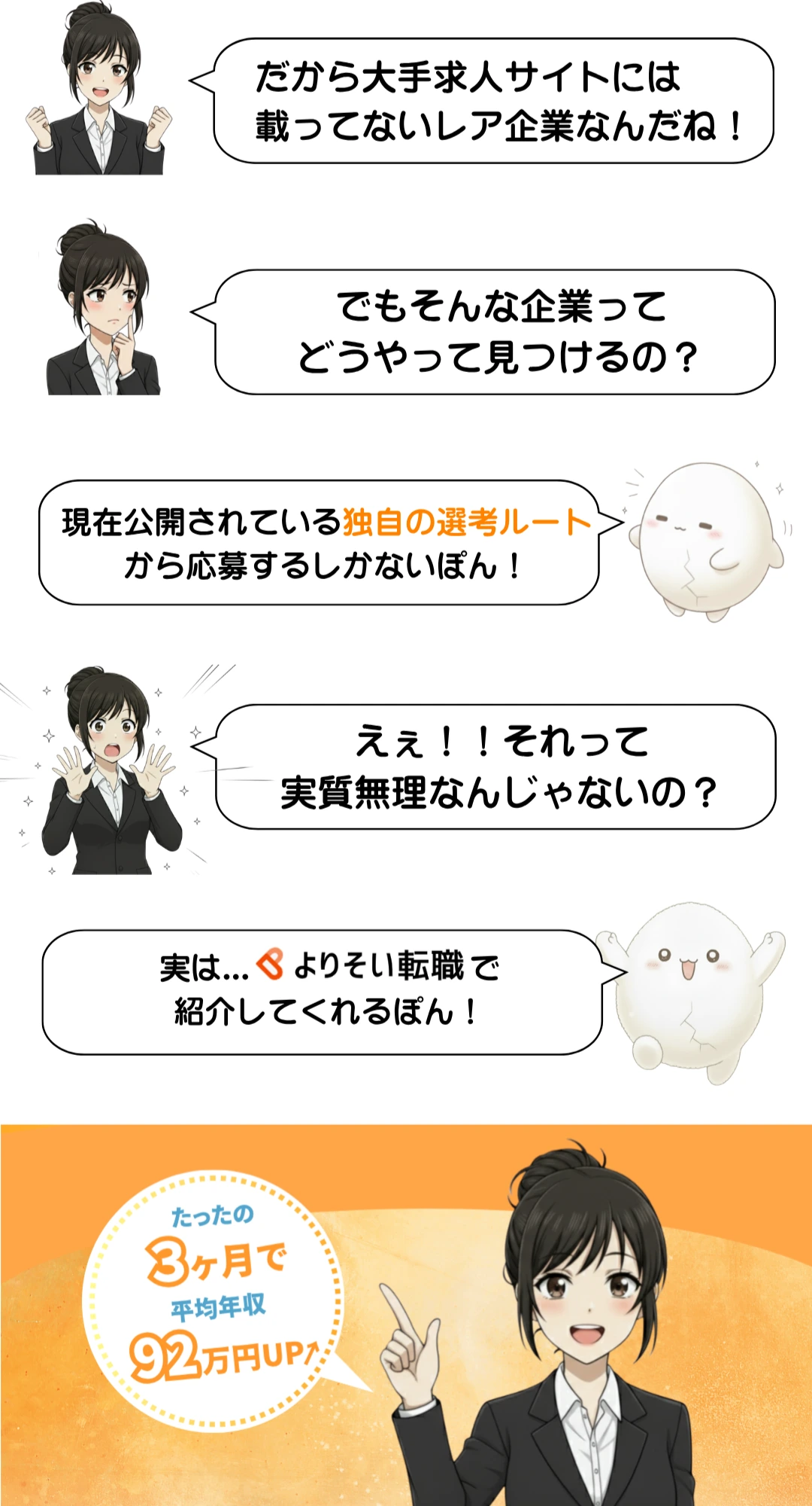大手転職サイトや一般的な転職サービスなどでは公開していない”よりそい転職独自の”求人のことを指します。