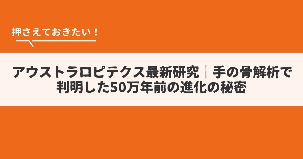 このようにアウストラロピテクスの手の骨解析は、人類進化の歴史を見直すだけでなく、私たち自身のルーツを探る上でも極めて重要な発見となりました。
