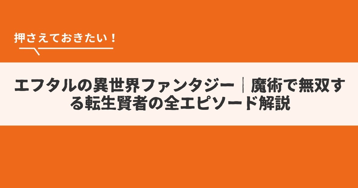 物語はエフタルの再転生から始まり、彼の学院生活やバトル、成長を描いたエピソードが多数展開されています。各話ごとの見どころや注目ポイントも詳しくご紹介します。