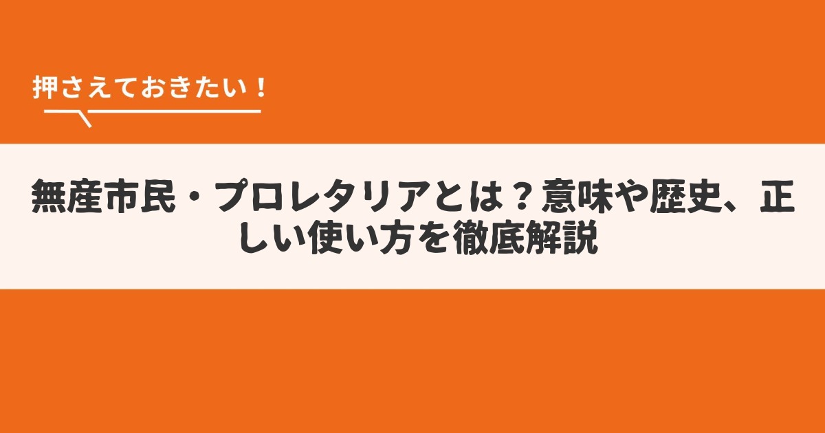「無産市民」や「プロレタリア」という言葉は、社会や歴史、経済の話題でよく登場します。