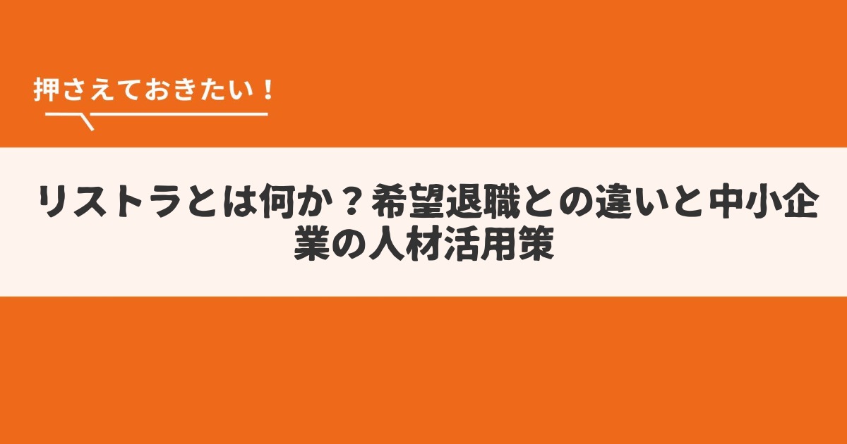 本記事では、「リストラ」と「希望退職」の違いから、大企業・中小企業それぞれの人員整理の実態、中高年人材活用の重要性、具体的な支援策まで幅広く解説しました。