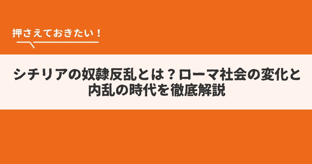 古代ローマ史を語るうえで「シチリアの奴隷反乱」は欠かせない重要な事件です。ローマの属州支配と経済構造の変化が、やがて社会の歪みを生み、壮大な奴隷反乱へと発展しました。この記事では、シチリアの奴隷反乱を中心に、その背景となるローマ社会の変化、中小農民の没落、グラックス兄弟の改革、そして「内乱の1世紀」までの流れを、歴史が苦手な方にも分かりやすく解説します。Q&Aや年表も充実。ぜひ最後までご覧ください。