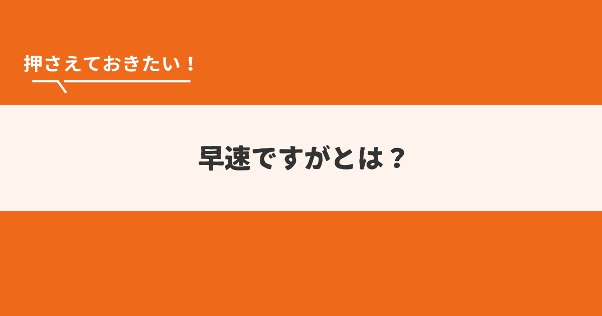 - 「早速ですが」は「すぐに本題に入りますが」という意味のフレーズで、ビジネスシーンでよく使われる。