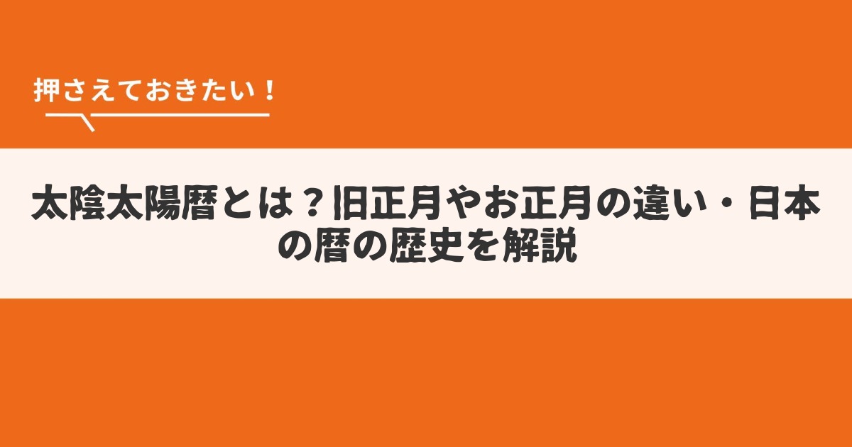 太陰太陽暦という言葉を耳にしたことはありますか?現代日本では西暦で日付を数え、お正月も1月1日に祝うのが一般的ですが、かつては異なる暦が使われていました。太陰... -