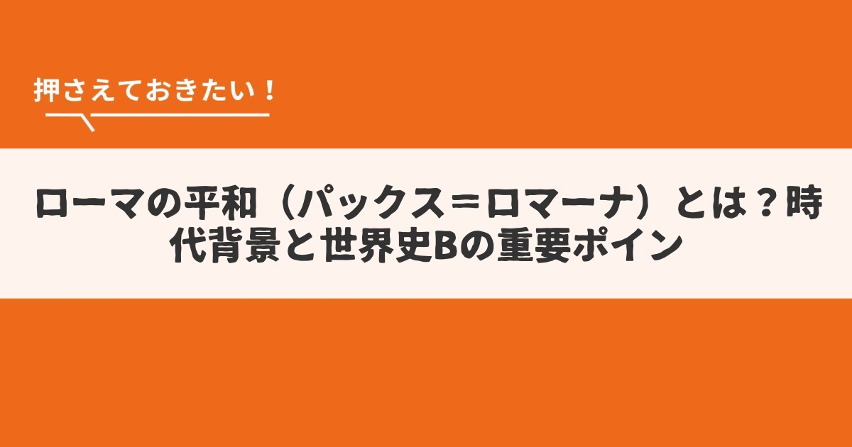カテゴリ追加テストローマの平和(パックス=ロマーナ)とは?時代背景と世界史Bの重要ポイン