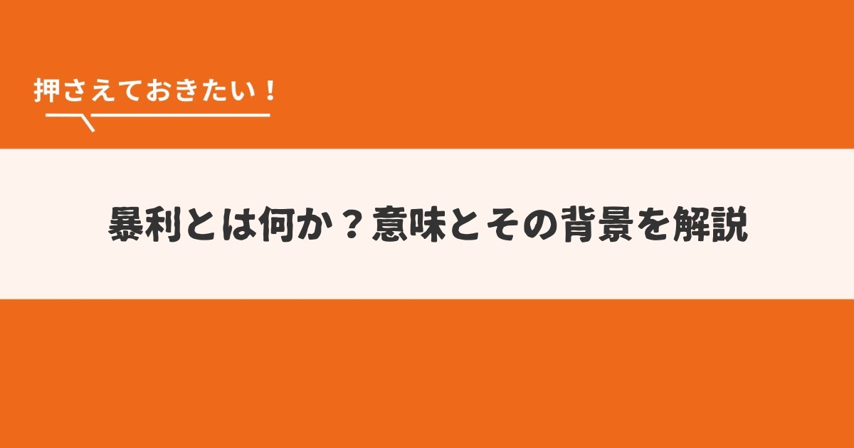 暴利とは、通常の利益を大きく超えた不当な利益を指します。主に商品やサービスの価格が過剰に高く設定されている場合に使われる言葉です。消費者や取引相手にとって不... -