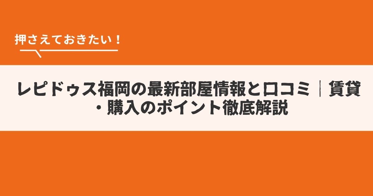カテゴリ追加テストレピドゥス福岡の最新部屋情報と口コミ|賃貸・購入のポイント徹底解説