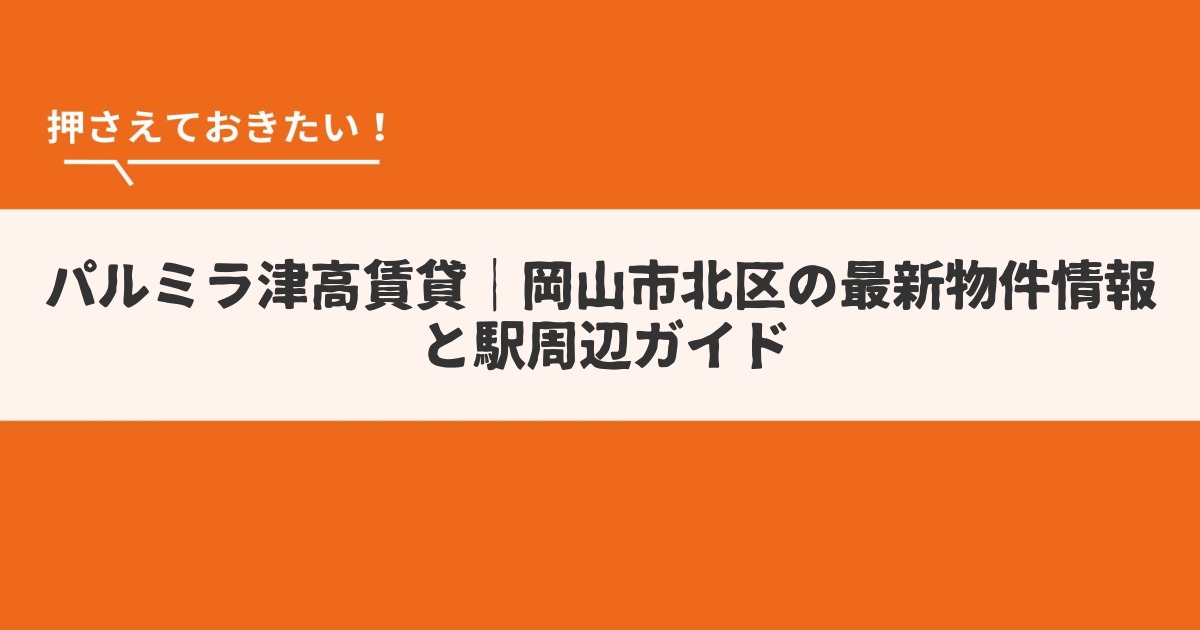 カテゴリ追加テストパルミラ津高賃貸|岡山市北区の最新物件情報と駅周辺ガイド