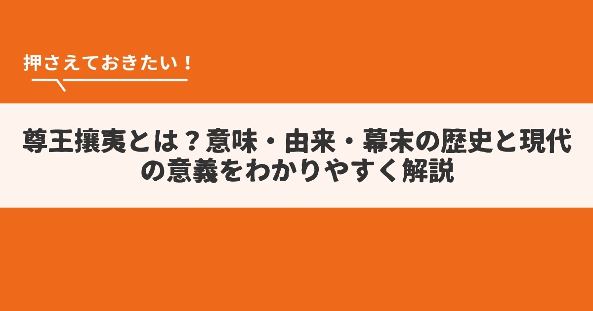 カテゴリ追加テスト尊王攘夷とは?意味・由来・幕末の歴史と現代の意義をわかりやすく解説