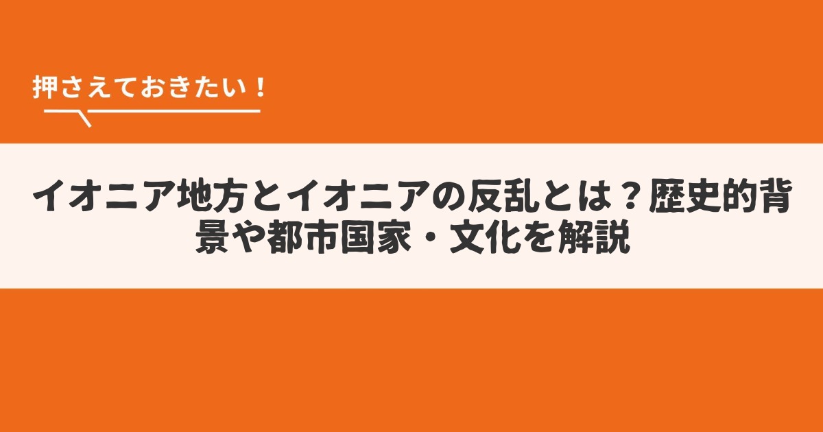 イオニア地方とイオニアの反乱は、古代ギリシャ史や世界史を学ぶうえで欠かせない重要なキーワードです。 この記事では、イオニア地方の特徴や歴史的背景、そしてイオニ... -