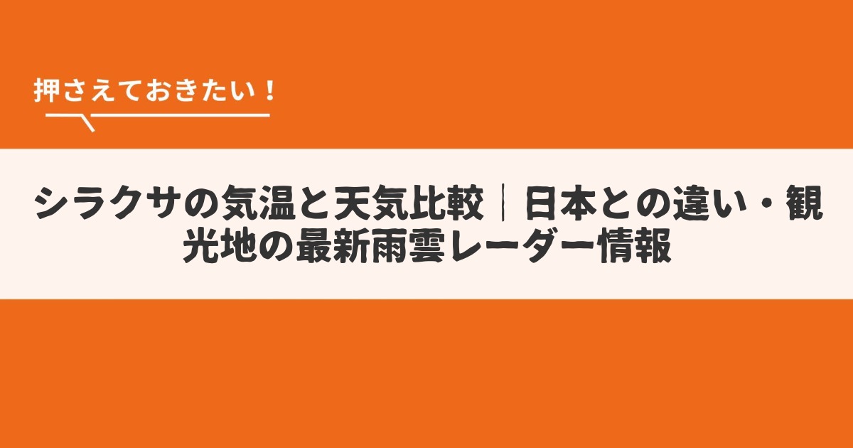 カテゴリ追加テストシラクサの気温と天気比較|日本との違い・観光地の最新雨雲レーダー情報