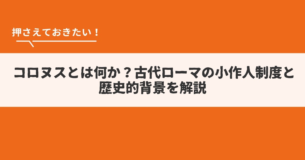コロヌスという言葉を聞いたことがありますか? 歴史や社会の授業で登場することもあるこの用語は、古代ローマ時代の社会や経済を理解するうえでとても重要なキーワード... -