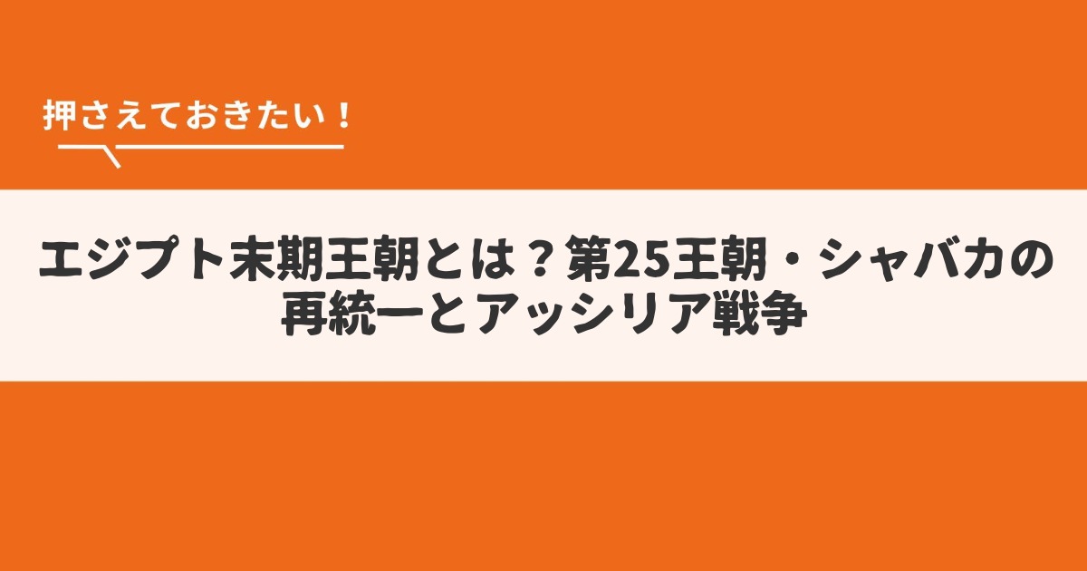カテゴリ追加テストエジプト末期王朝とは?第25王朝・シャバカの再統一とアッシリア戦争