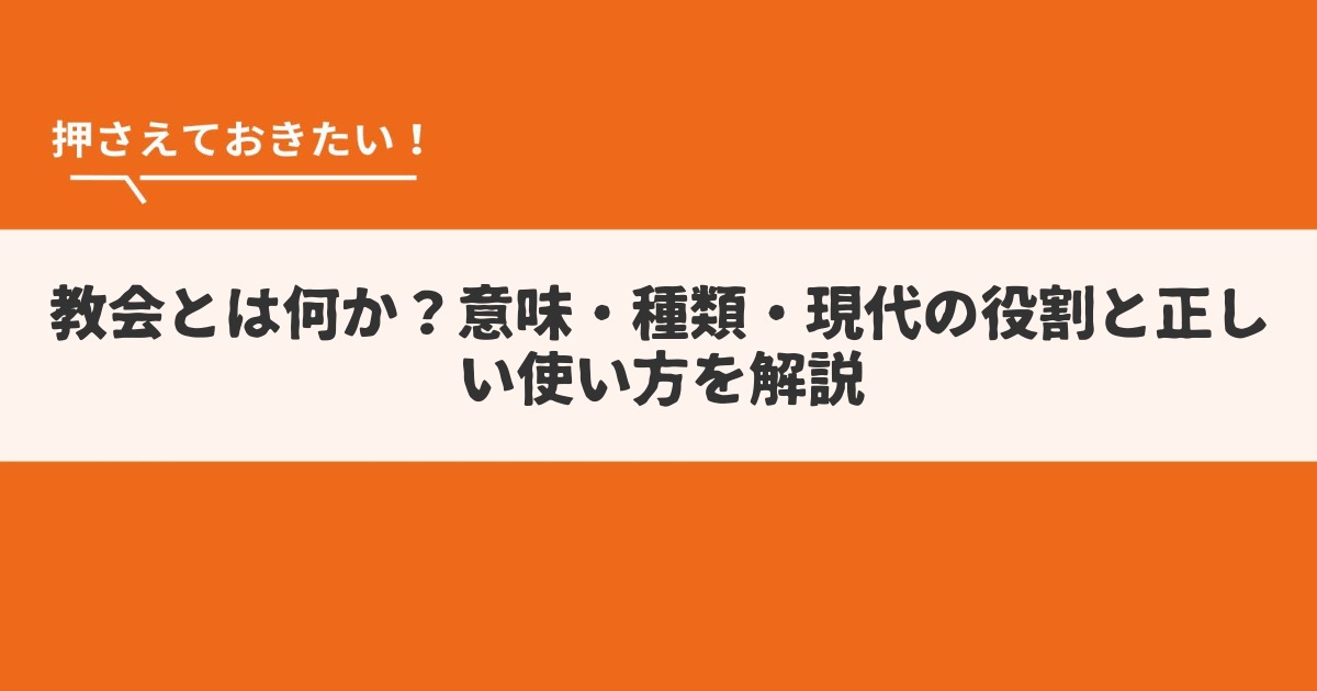 教会という言葉は、日常生活や歴史、旅行、ビジネスシーンなどさまざまな場面で耳にします。 しかし、その意味や役割、正しい使い方について詳しく知っている方は意外と... -