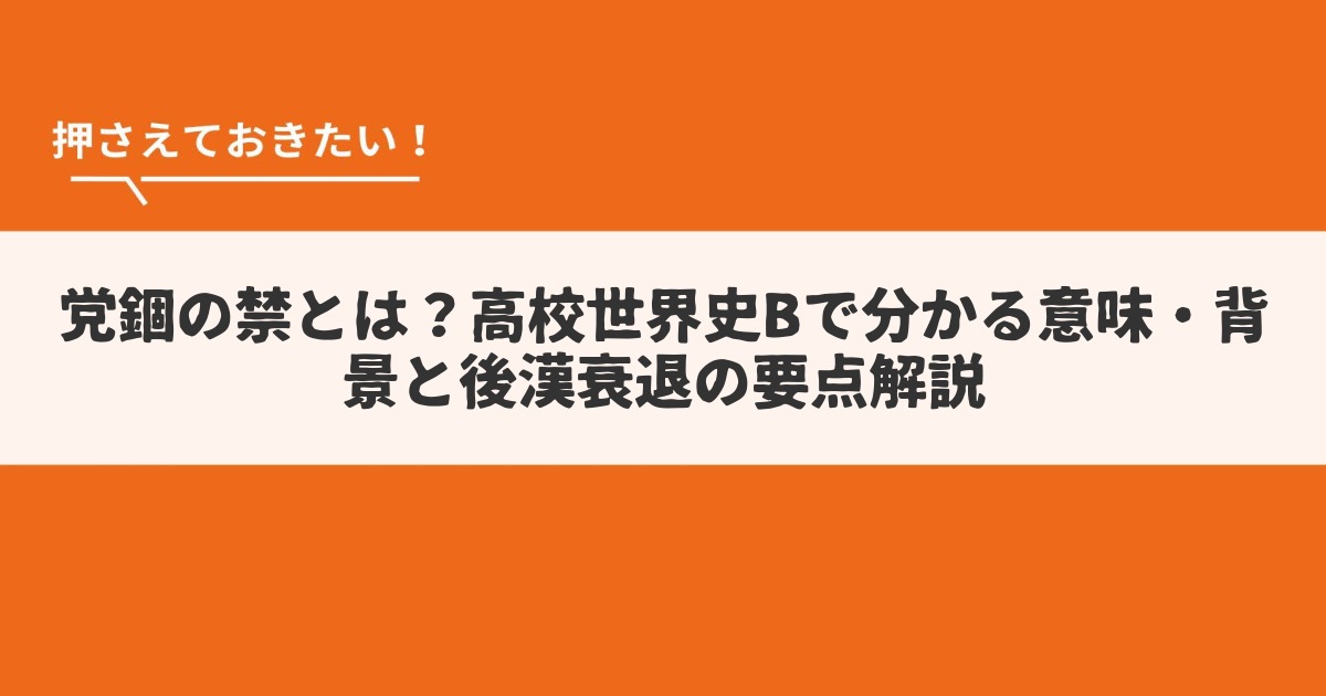 カテゴリ追加テスト党錮の禁とは?高校世界史Bで分かる意味・背景と後漢衰退の要点解説