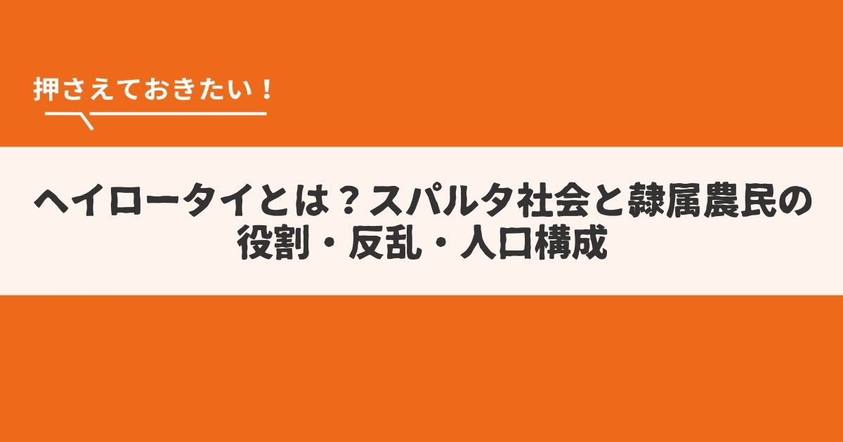 カテゴリ追加テストヘイロータイとは?スパルタ社会と隷属農民の役割・反乱・人口構成