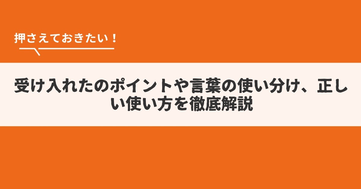 「受け入れた」という言葉は、日常生活からビジネスシーンまで幅広く使われる表現です。 本記事では、「受け入れた」の正しい意味や使い方、似た表現との違い、そしてビ...