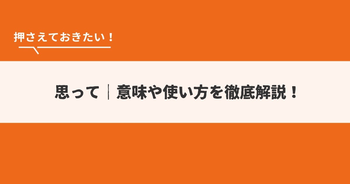 「思って」という言葉は、日常会話からビジネスシーンまで幅広く使われる日本語表現です。 この言葉の意味や使い方、そして注意点について詳しく解説します。 この記事... -