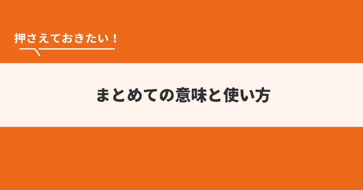 「まとめて」という言葉は日常会話やビジネスシーン、さらにはネット上でも頻繁に使われる便利な表現です。 この記事では、「まとめて」の意味や使い方、具体的なシーン... -